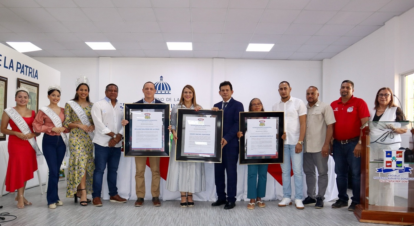 La alcaldesa de Villa Tapia, Dra. Raquel Rosario, junto a los regidores Penélope Marte y Alexis Martínez, participó en el acto de entrega del Premio a la Excelencia Académica 2025, organizado por la Oficina Senatorial de Hermanas Mirabal y encabezado por la senadora María Mercedes Ortiz Diloné.